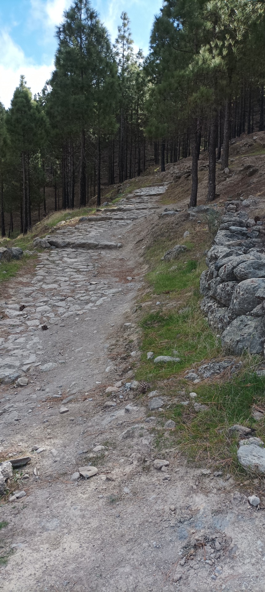 Esta se caracteriza por empezar desde un inicio subiendo una larga cuesta hasta llegar a las Cuevas de Caballero partiendo desde Artenara. Desde esta zona donde se empieza a notar la fatiga porque comienza un ascenso pronunciado por la pista forestal que finaliza en el Mirador de las Degollada de las Palomas.