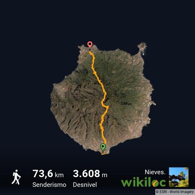 Esta ruta cruza toda la isla, partiendo del Faro de Maspalomas hasta la parte norte de la isla concretamente a la ciudad de Gáldar . Se caracteriza por grandes ascensos y descensos donde hay un gran contraste de los paisajes con aproximadamente un desnivel positivo de 2700 metros y 2600 metros negativos.