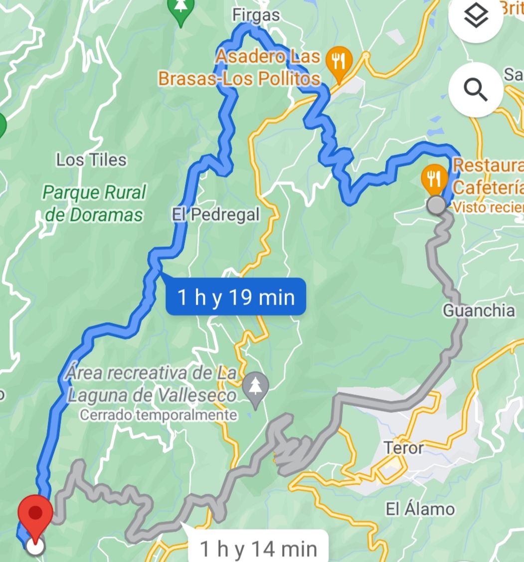 Aquí tenemos uno de los entrenamientos más completos ,debido a que tenemos zonas llanas de mucho pedaleo donde se puede apretar para mejorar la potencia, largas subidas donde aumentamos nuestra resistencia y bajadas que incrementan los reflejos, en total unos 30 kilómetros acumulados con una duración de 2 horas 40 minutos ,aunque tendrás la opción de hacer el otro recorrido que se muestra a continuación yendo por Teror: